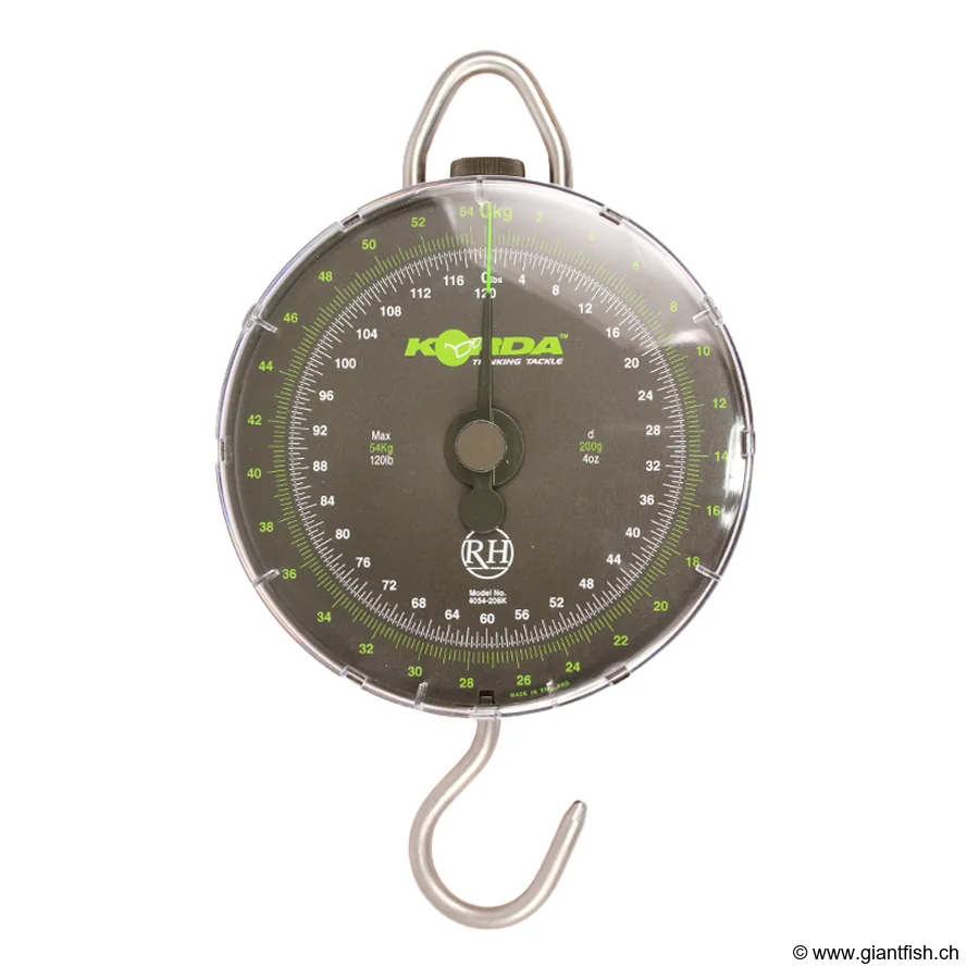 The Korda Gigantica 120lb Dial Scales is the ultimate solution for fishing enthusiasts seeking a high-precision and high-capacity scale. Born from the renowned expertise of Korda, this instrument is designed to offer exemplary reliability and unmatched ease of use, both on the banks and during demanding competitions.