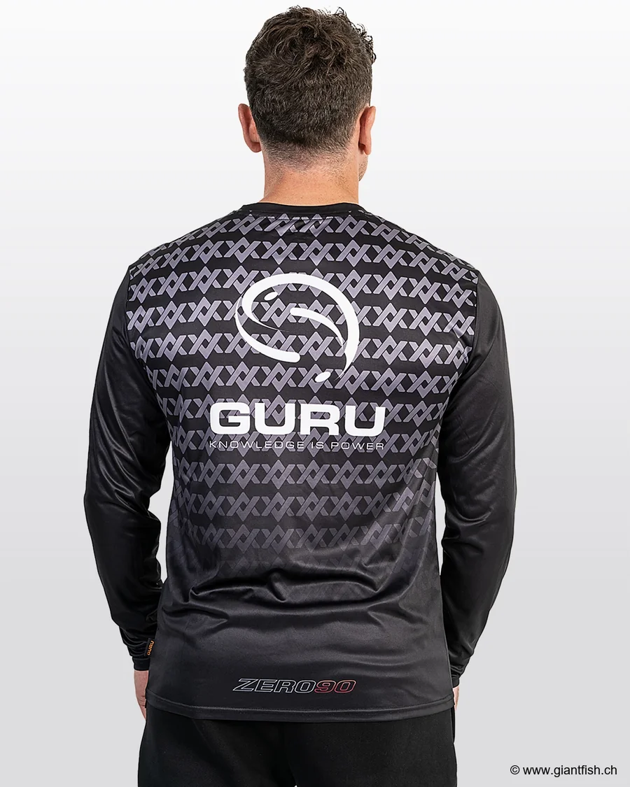 true UV shield, far surpassing the protection most sunscreens offer. Its technical material effectively blocks 98% of UVA and UVB rays, protecting the skin from sunburn, premature aging, as well as irritations and allergies often caused by frequent sunscreen reapplication. The ergonomic cut and light fabric provide total freedom of movement, while the quick-dry feature prevents any unpleasant feeling of dampness. Whether you're in action, casting, or walking by the water, the Guru Aventus Sun Core Shirt guarantees constant comfort and a professional look. Its distinctive design with neat finishes enhances the look while remaining discreet and functional thanks to strategically placed embroidered logos.
