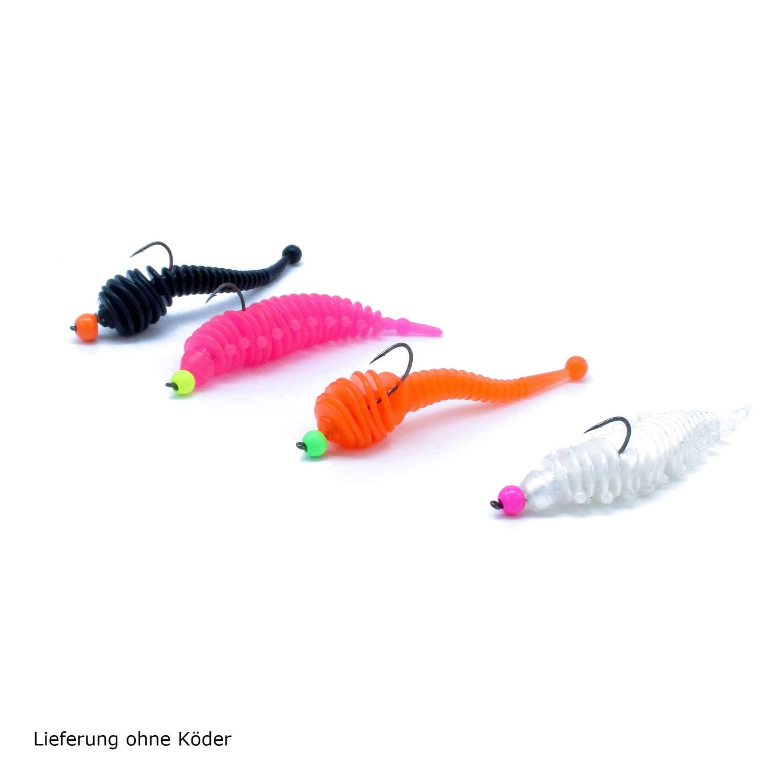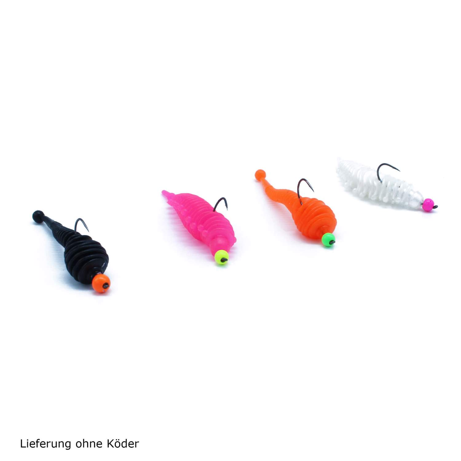La pêche à la truite avec des leurres souples UL, tels que les Troutlook Shaky Worms et Crazy Ripplers, est actuellement l'une des méthodes les plus populaires en lac de truite. Les hameçons spéciaux Forellen Jig sont encore très difficiles à trouver. Nous les proposons dans différentes tailles et couleurs avec des hameçons Gamakatsu ultra-tranchants !Sharp pour les leurres souples pour la truite - Les hameçons spéciaux Forellen Jig Troutlook