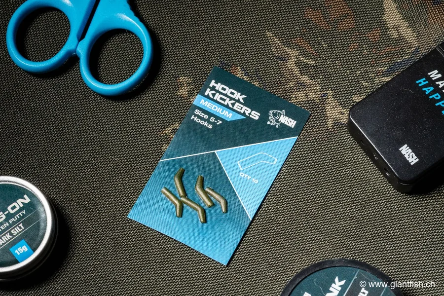 Pour tirer le meilleur parti du NASH Hook Kicker, choisissez une taille adaptée à la forme générale de l'hameçon que vous utilisez, sans forcer exagérément lors de la mise en place. Enfilez d'abord le kicker sur le bas de ligne, puis faites-le glisser sur l'oeillet de l'hameçon jusqu'à ce que l'angle obtenu vous paraisse suffisamment agressif. Sur un montage pop-up de type Ronnie, associez-le à un émerillon adapté afin de conserver une liberté de rotation maximale. Sur un montage plus classique, veillez à ce que le cheveu et l'appât soient positionnés de manière à ne pas gêner la rotation.