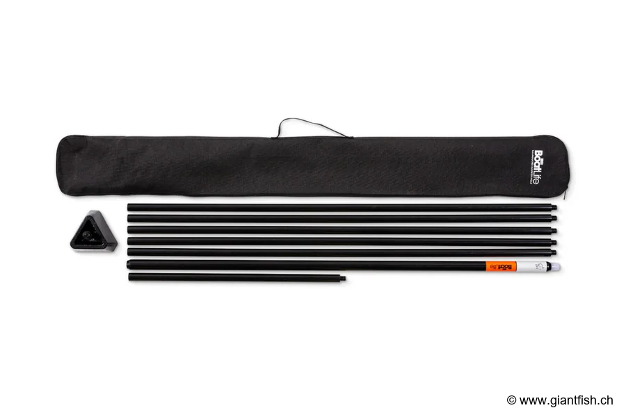 Son mât segmenté permet d'atteindre une hauteur adaptée à la zone à baliser et à la profondeur de l'eau, tandis que la base lestée maintient le marqueur bien en place, même lorsque le vent forcit ou que le courant se renforce. La partie supérieure, très visible et réfléchissante, assure un repérage optimal, aussi bien au faisceau de la lampe qu'à distance.