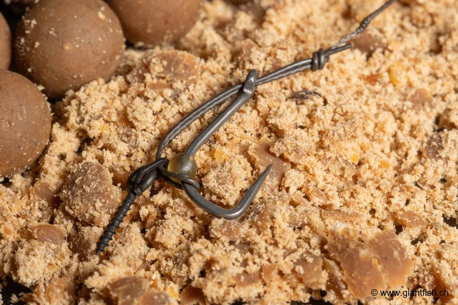 Vissez votre appât sur la vis métallique prévue à cet effet : bouillette, wafter ou imitation flottante. Si vous pêchez avec un appât pop-up, ajoutez une petite quantité de pâte de tungstène sur le bas de ligne, à quelques centimètres de l'hameçon, pour obtenir une présentation équilibrée qui se dépose délicatement sur le fond.