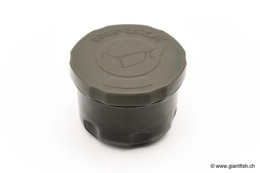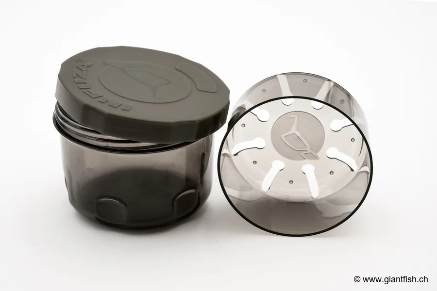 Conseils d’utilisation et montages recommandés : Pour un usage optimal, remplissez le panier avec le nombre d’appâts voulu, versez votre attractant liquide favori dans le fond de l’Infuza, insérez le panier et fermez soigneusement le couvercle. Agitez l’ensemble régulièrement pour que tous les appâts s’imprègnent uniformément. L’Infuza Large est particulièrement recommandée pour préparer des bouillettes, pop-ups, pellets, et tous types d’esches, et se marie parfaitement avec les liquides attractants comme le Goo Supreme. Pour les pêches techniques, elle facilite la préparation en avance de tous vos appâts.