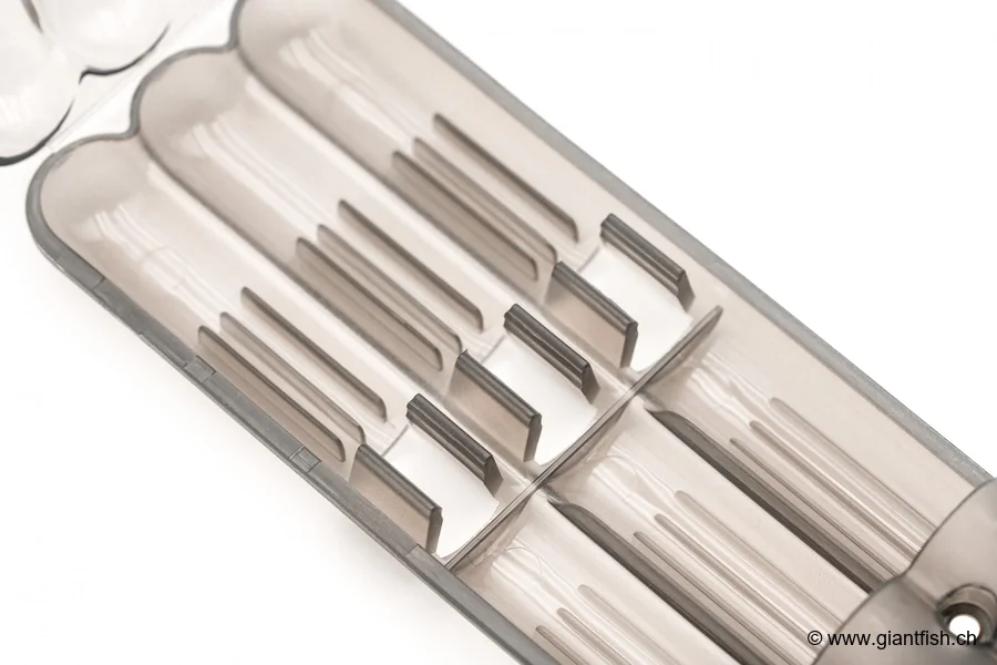 Korda Stowaway Case 2 Rod, insérez délicatement chaque indicateur dans l’un des deux compartiments prévus à cet effet. Clipsez la tête de l’indicateur dans la zone dédiée, puis placez la chaîne afin que l’aimant la maintienne parfaitement. Ce mode d’utilisation vous assure un transport sans risque et une protection totale, aussi bien dans le coffre de votre voiture que dans le sac de pêche. Pour une organisation optimale, veillez à toujours replacer vos indicateurs dans l’étui après chaque session, évitant ainsi toute perte ou dégradation accidentelle.