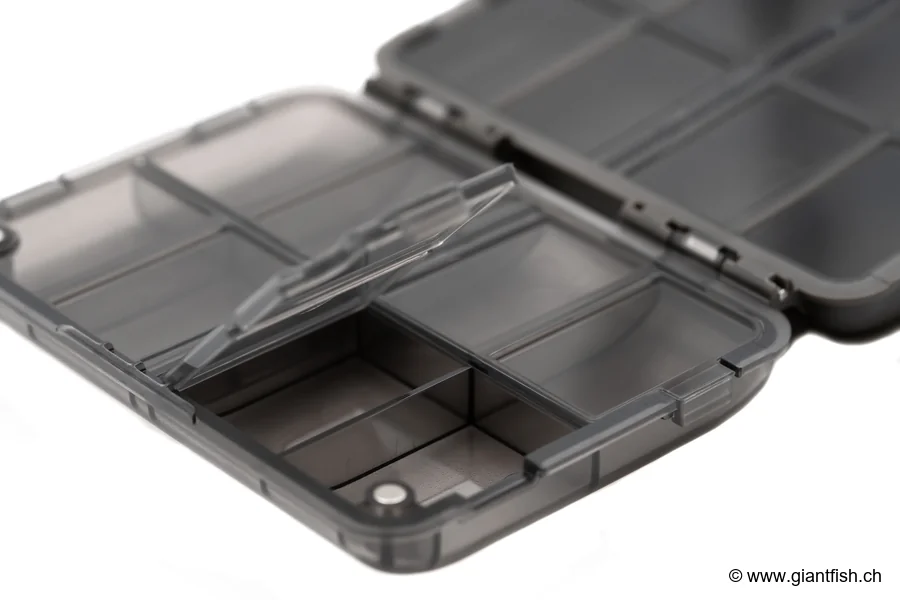 Placez vos hameçons, émerillons, anneaux ou gaines dans les petits compartiments individuels pour éviter tout emmêlement. Utilisez les séparateurs amovibles du compartiment principal pour adapter l’espace à vos bobines, boîtes à esches ou accessoires volumineux. Idéale avec les bas de ligne zig ou traditionnels, la Korda 16 Compartment Mini Box optimise la préparation et la réalisation de montages directement au bord de l’eau. Elle s’accommode parfaitement d’une technique de pêche à la carpe, notamment en association avec les autres accessoires Korda, pour faciliter création et stockage de rigs ou bas de ligne.