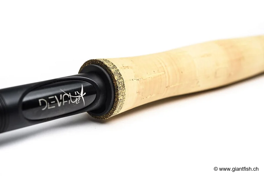 Découvrez la Devaux Cannes T54, canne à mouche en carbone HMX54, alliant élégance, précision et confort avec poignée liège AAA et composants haut de gamme.
