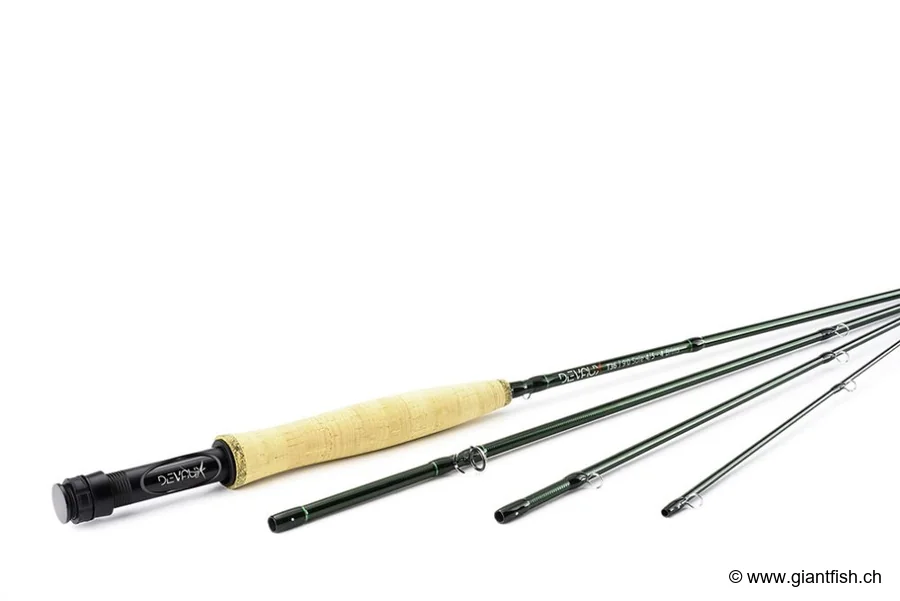 Canne à mouche Devaux T35, blank carbone HMX35, action progressive, polyvalence tous types de pêche, confort haut de gamme, équilibre optimal, anneaux SIC et monopattes, poignée liège renforcée, qualité supérieure Devaux.