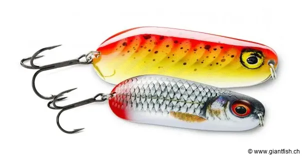 Grand classique restauré, le Nauvo Rapala® apporte une touche de modernité aux cuillers métalliques traditionnelles qui ont fait leurs preuves. Apparue à l'origine dans les années 1990, la Nauvo possède une action très réaliste et ample lors d'une récupération régulière, tandis que lors d'une récupération plus rapide, des mouvements plus erratiques apparaissent, brisant le rythme et ajoutant du flash. À la retombée, le papillonnement et le rolling décuplent l’attractivité. Les finitions modernes combinent des couleurs de cuillers traditionnelles actualisées avec des motifs réalistes de poissons fourrage en HD. Disponible en deux tailles : une grande – parfaite pour cibler les grands prédateurs – et une petite, qui convient parfaitement aux truites et aux saumons.