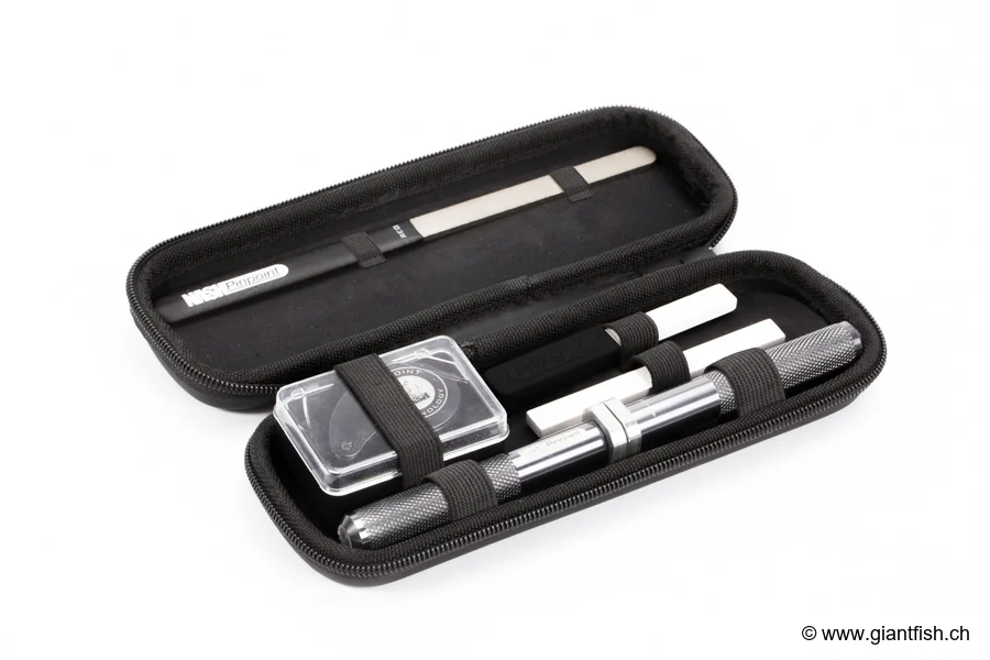 Conçu pour la pêche de la carpe mais également pertinent pour d'autres techniques exigeantes, ce kit d'affûtage de précision pour hameçons de pêche vous permet d'obtenir un tranchant régulier et reproductible, même au bord de l'eau. Vous gardez ainsi un contrôle total sur l'état de vos montages et pouvez ajuster vos pointes en quelques instants.