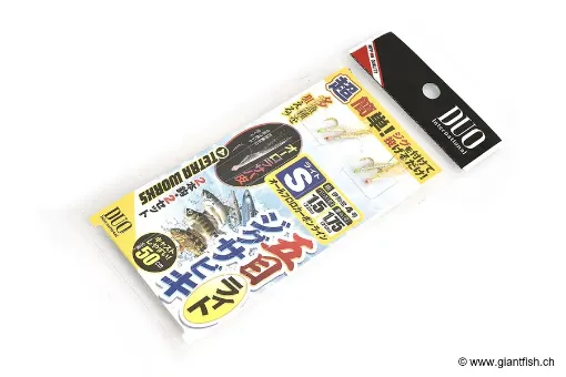 L’un des grands atouts de ce kit de remplacement sabiki DUO réside dans le soin apporté à la conception des potences. Leur diamètre plus fin que celui de la ligne principale permet de conserver une excellente résistance globale tout en offrant un comportement très mobile aux plumes. Ce différentiel de diamètre contribue également à limiter les emmêlements, car les potences se détachent mieux du reste du montage en action.