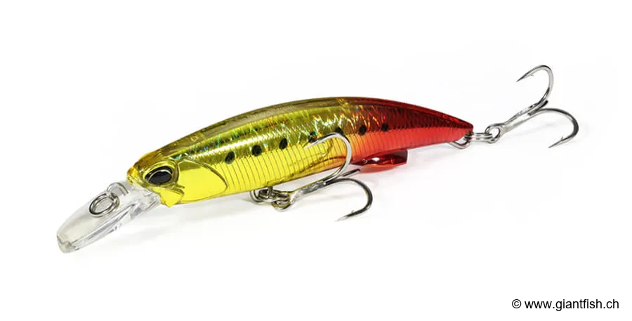 récupération linéaire rapide. Sa nage serrée et régulière imite un poissonnet en fuite, ce qui déclenche les attaques réflexes des prédateurs en chasse. Sa tenue de ligne reste stable même à grande vitesse, un atout majeur pour la pêche au lancer dans le vent, le courant ou la houle.