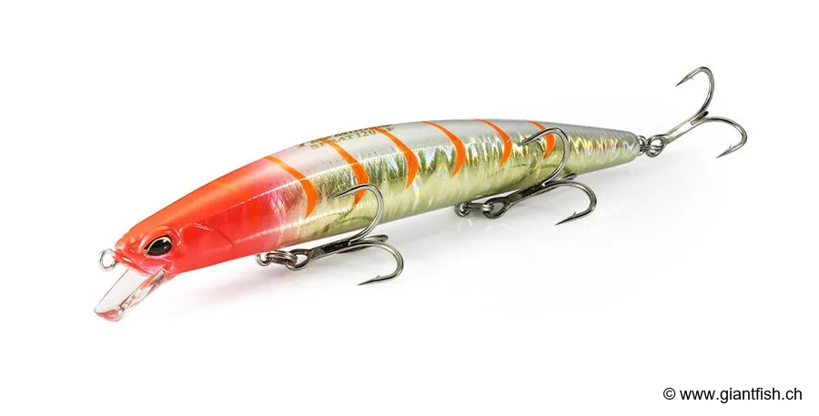 Tide Minnow Sprat 120SF réside dans sa nage très naturelle. Ce jerkbait présente une action caractéristique qui combine à la fois un