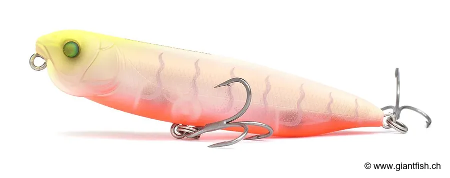 Le principal atout de ce leurre de surface pour carnassiers réside dans sa polyvalence et sa facilité d'utilisation. Une simple alternance de twitchs et de pauses suffit pour obtenir une nage serrée et fluide, très séduisante pour les poissons en chasse. Même à faible vitesse de récupération, le leurre conserve une très bonne stabilité et continue de produire des éclaboussures attractives.