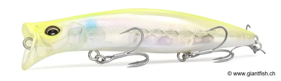 Autre avantage notable : la polyvalence. Le leurre de surface Megabass Kirinji 120 accepte une large palette d'animations. Une simple récupération linéaire permettra de couvrir rapidement du terrain, tandis que des tirées plus marquées déclencheront des écarts latéraux et des changements de rythme particulièrement excitateurs pour les prédateurs.