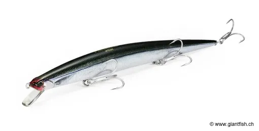 poisson nageur minnow pour la pêche en mer pensé pour répondre aux besoins des pêcheurs du bord confrontés aux vagues, au vent et aux courants. Sa grande longueur lui confère une présence marquée dans l’eau, tout en conservant une silhouette fine et réaliste qui imite parfaitement une proie fusiforme.
