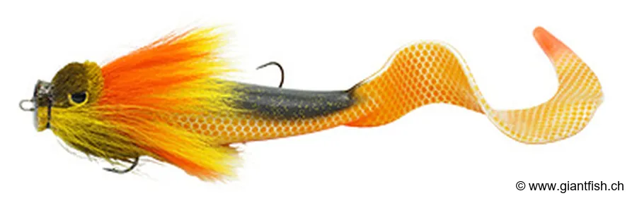 Le CWC Pigtail Giant est un leurre souple brochet conçu pour cibler spécifiquement les gros carnassiers en quête d’une proie facile et volumineuse. Sa grande queue en forme de faucille se met instantanément en action dès les premiers tours de manivelle, produisant une nage ondulante et de fortes vibrations qui se propagent loin dans l’eau. Ce profil généreux permet de proposer une bouchée imposante sans rendre l’animation fatigante, ce qui en fait un choix stratégique pour insister sur les zones à très fort potentiel. Complément idéal des leurres shad et des swimbaits plus rigides, ce grub géant apporte une signature de nage différente, très souple et planante, capable de décider des poissons éduqués ou suiveurs.