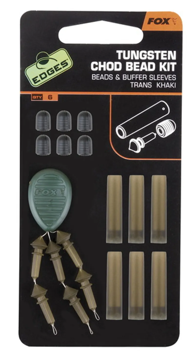 Le kit Tungsten Chod Bead a été fabriqué dans un matériau semi-translucide de couleur kaki pour se marier à la couleur du fond. Ils sont lestés pour garantir un maximum de camouflage. Conçus pour s’utiliser directement sur le corps de ligne, sans leader. Durant le combat, les billes descendent sur le corps de ligne jusqu’au sleeve amortisseur. Les sleeves amortisseurs ont également un trou qui leur permet d’être utilisés avec un plomb de type drop-off.