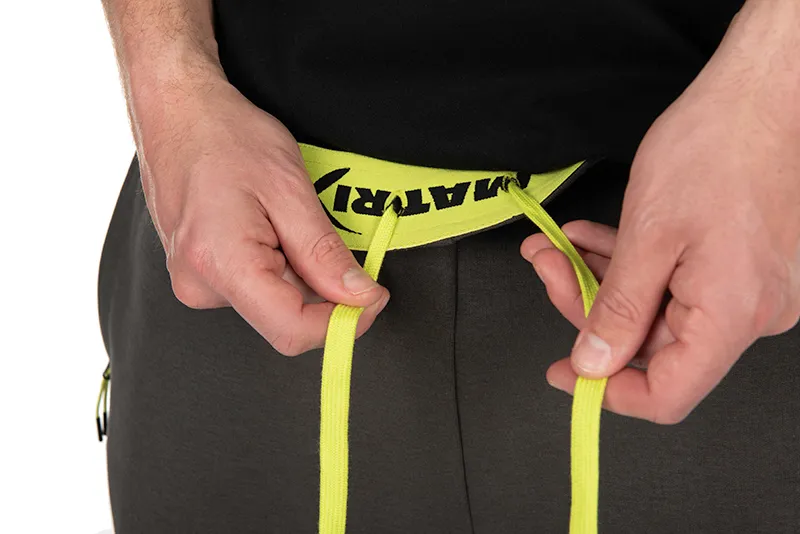 Achetez les Matrix Black Edition Jogger Shorts, avec cordon de serrage lime, logo lime, languettes easy grip, poches zippées, poche arrière bouton, logos caoutchouc, tissu robuste 78% polyester 22% coton, 300gsm, disponibles en tailles S à XXXL.