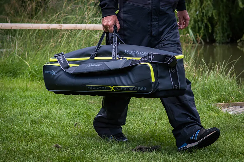 Découvrez le Matrix Horizon X XL Storage Bag, une bagagerie haut de gamme conçue pour les compétiteurs de pêche modernes avec compartiments spécifiques et tissu robuste.