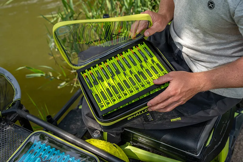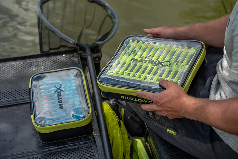 Boîte de rangement pour pêche, Matrix Shallow EVA Case 250, idéale pour ranger jusqu'à 2 casiers de plioirs 18cm. Elle est construite à partir d'EVA durable avec des coutures thermosoudées, son couvercle est transparent pour un contenu facilement identifiable. Matériau étanche. Dimensions L276 x W250 x H55mm. Matériau principal 100% EVA avec couvercle 100% PVC.