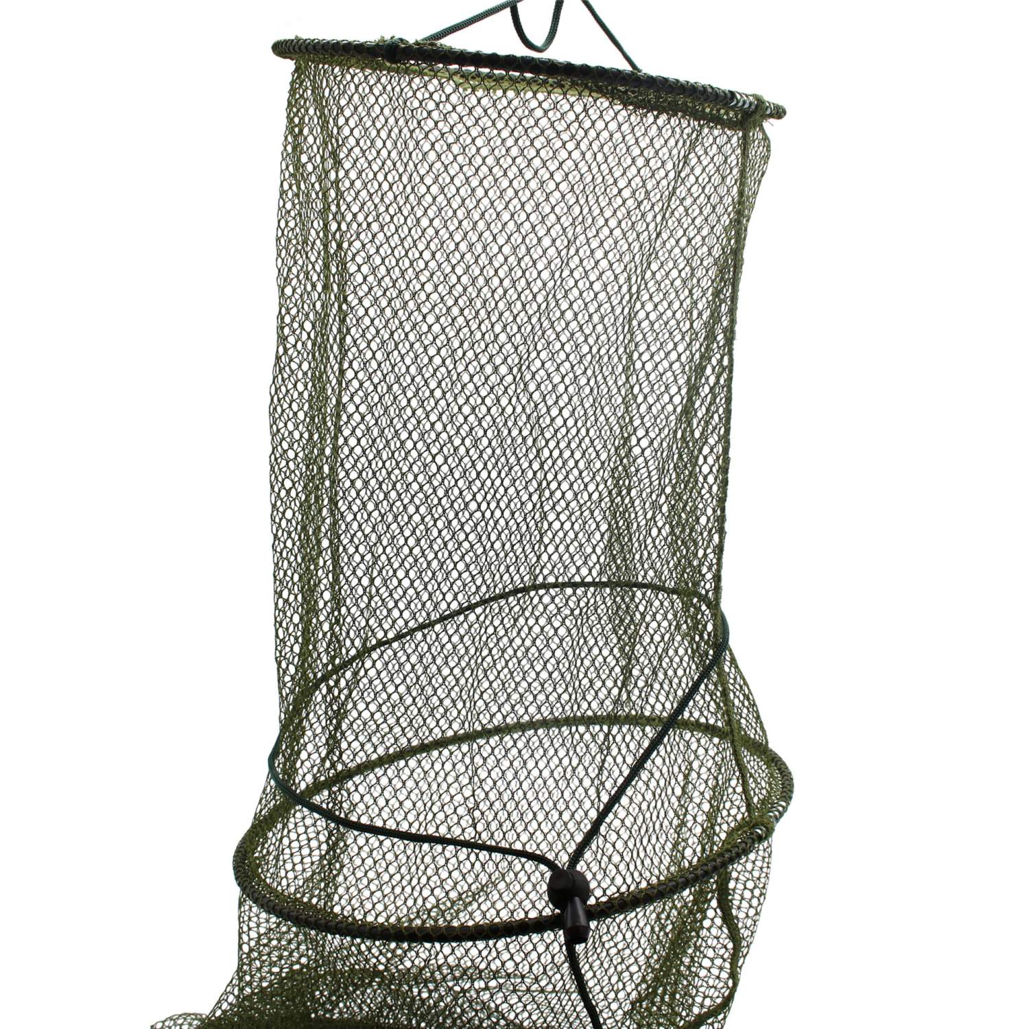 Grandes variations de modèles dans la série de Keschers de Troutlook. Un Setzkescher est une excellente façon de garder les poissons en vie et convient aux types de pêche où l'on reste sur le lieu de pêche pendant une longue période et attrape plusieurs poissons. Ils sont particulièrement populaires auprès de tous les pêcheurs de poissons blancs, qu'ils utilisent une canne à pêche ou une canne à pêche à la tête, lors de la pêche au feeder, lors de la pêche en match ou même lors de la pêche à la truite. La forme du Kecher est ronde et longue, de sorte qu'il peut être placé dans l'eau pour offrir un espace clos aux poissons. Idéal pour les pêcheurs amateurs et les compétitions : les setzkeschers de Troutlook. La forme du Kecher est définie par des anneaux de forme qui garantissent de laisser de la place aux poissons dans le setzkescher. L'ensemble comprend également un cordon de traction pour fermer le Setzkescher. Les mailles du filet sont sans nœuds, de sorte que la peau sensible des poissons ne soit pas endommagée.