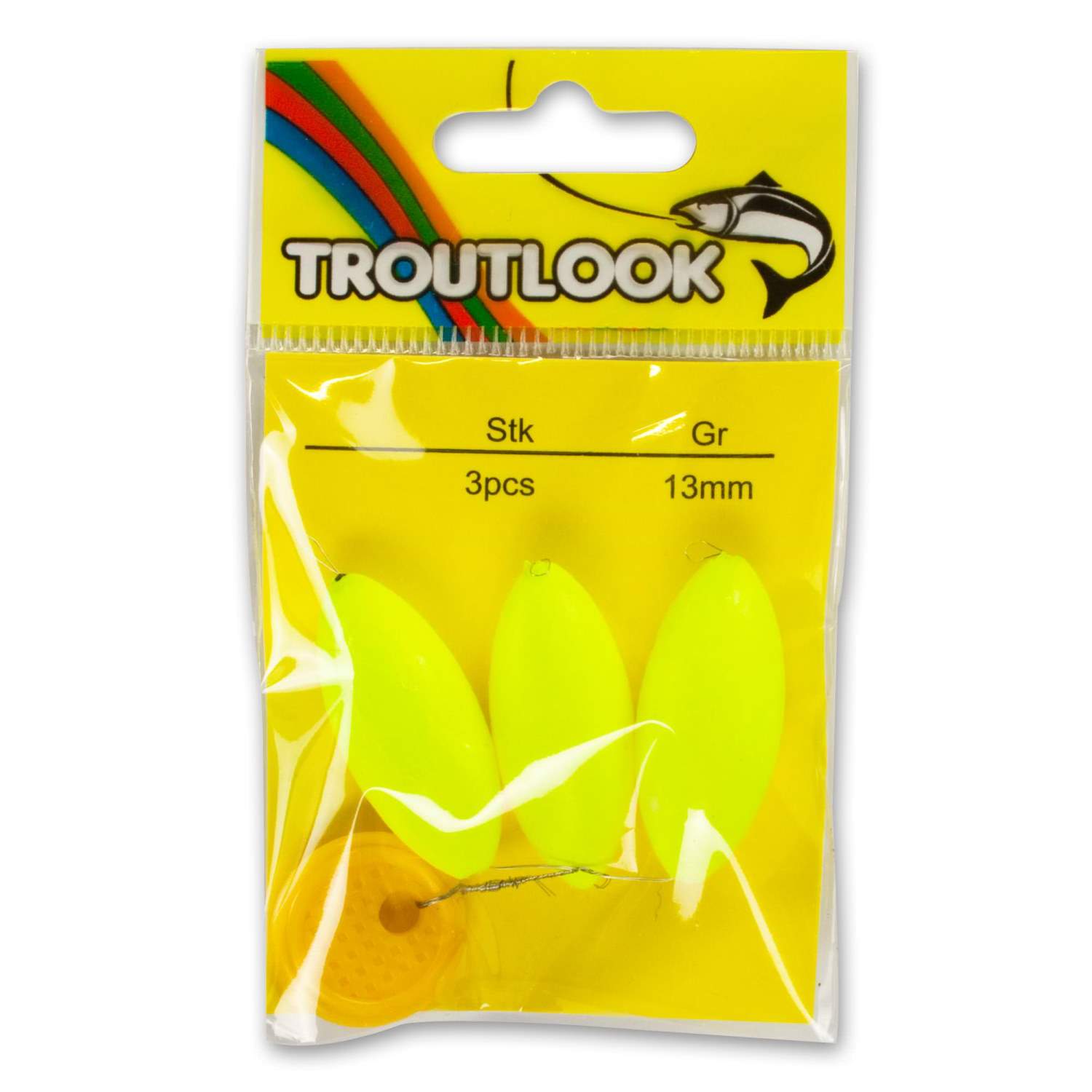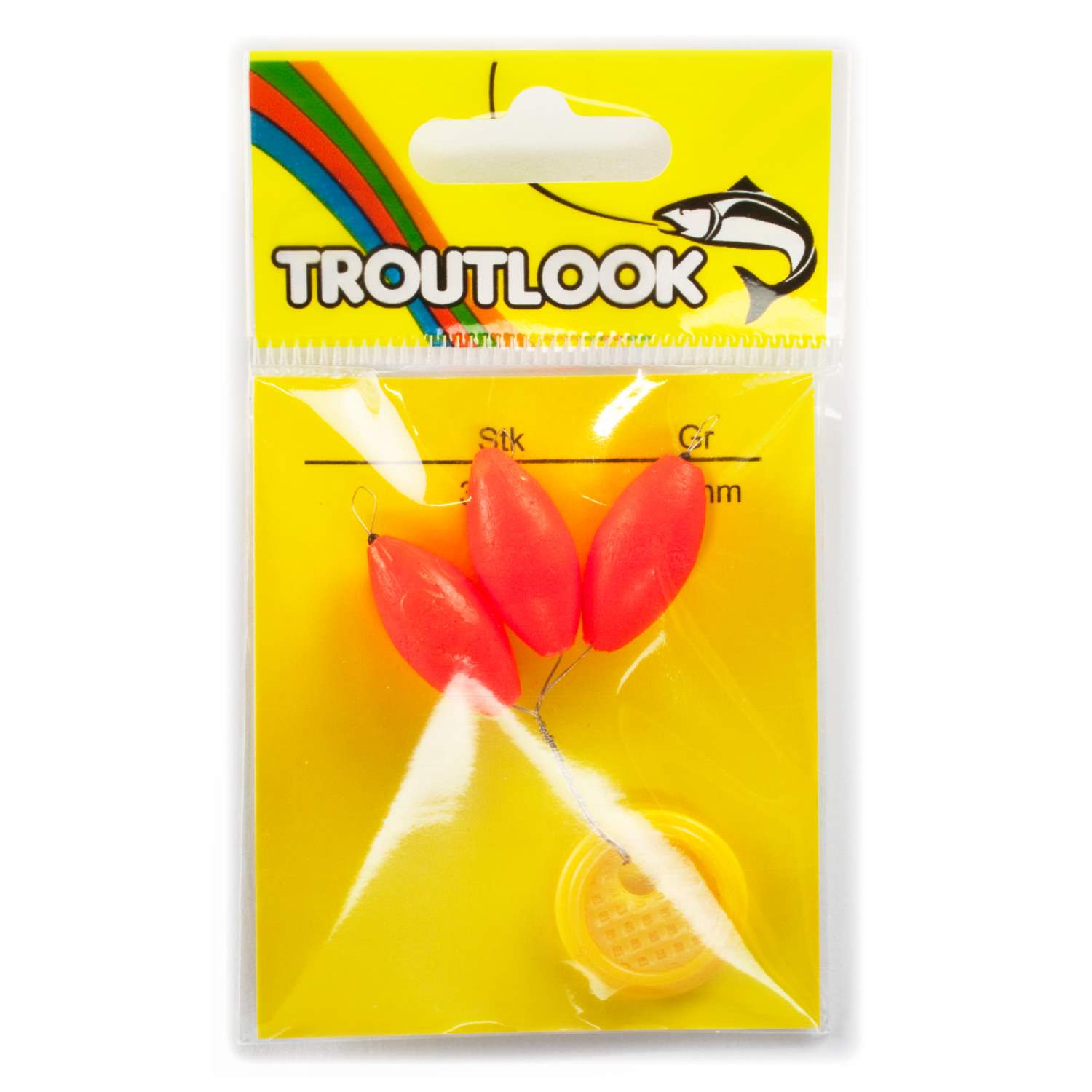 Troutlook propose bien entendu des poses pilotes bien visibles dans son programme de truite, comme on peut le constater facilement ici. Chaque paquet contient 3 pièces. Ces pilotes indiquent rapidement et de manière fiable une touche pendant la pêche, sans avoir une capacité de charge particulière.