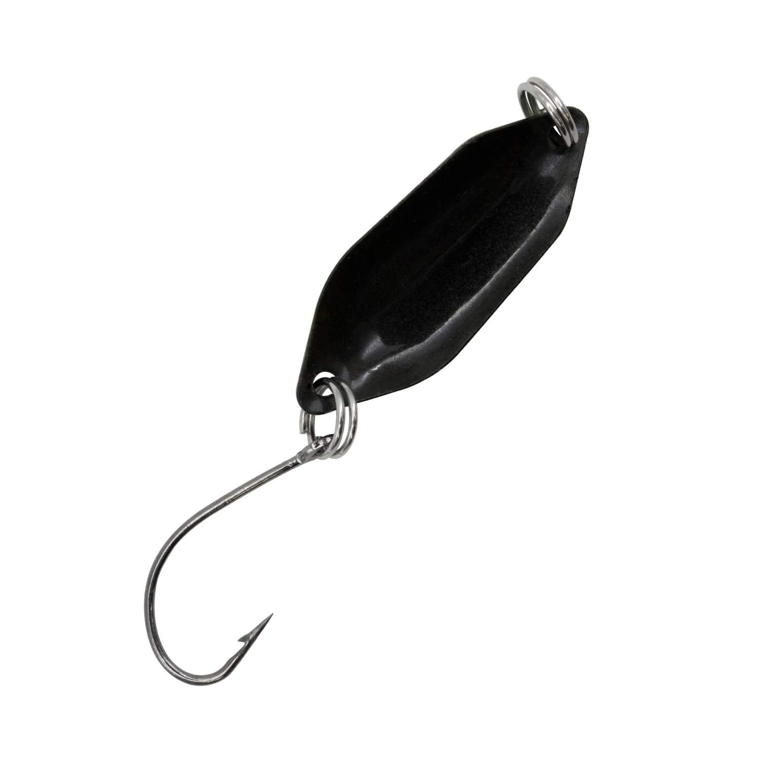 Les Troutlook Spoons sont équipées d'un hameçon individuel ultra fin et ultra coupant avec un fil d'un diamètre de seulement 0,7 mm. La pointe de l'hameçon en acier au carbone japonais avec finition nickel noir se fixe fermement dans la bouche de la truite lorsqu'elle mord. Cela garantit également que l'attaque réussit presque à 100 % du temps. Les leurres de taille qui peuvent être pris dans leur ensemble par les truites ont donc un taux d'accrochage nettement plus élevé.