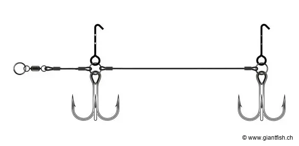 Ce rig se compose d’un acier inoxydable 49 brins (60lb), d’anneaux brisés renforcés haut de gamme, de «pin» (design exclusif VMC) permettant de fixer fermement le montage au leurre souple et d’un émerillon pour une rotation à 360° pendant le combat