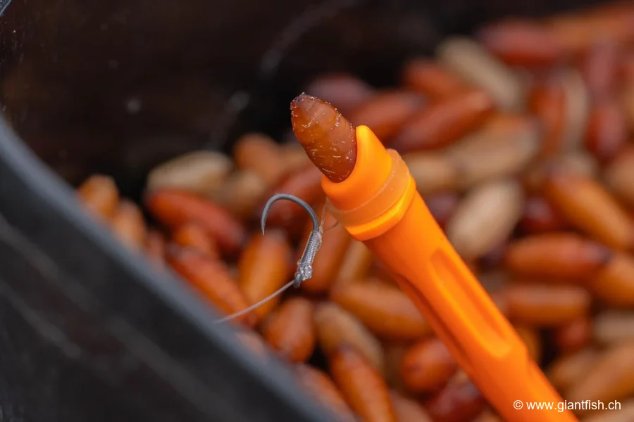 R : Il est compatible avec la plupart des esches animalières et végétales comme les asticots, casters ou pellets.