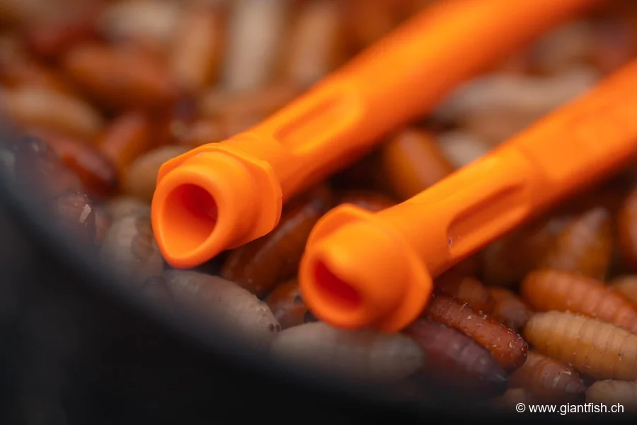 Système polyvalent compatible avec de nombreux types d’appâts animaliers et végétaux (asticots, casters, pellets)