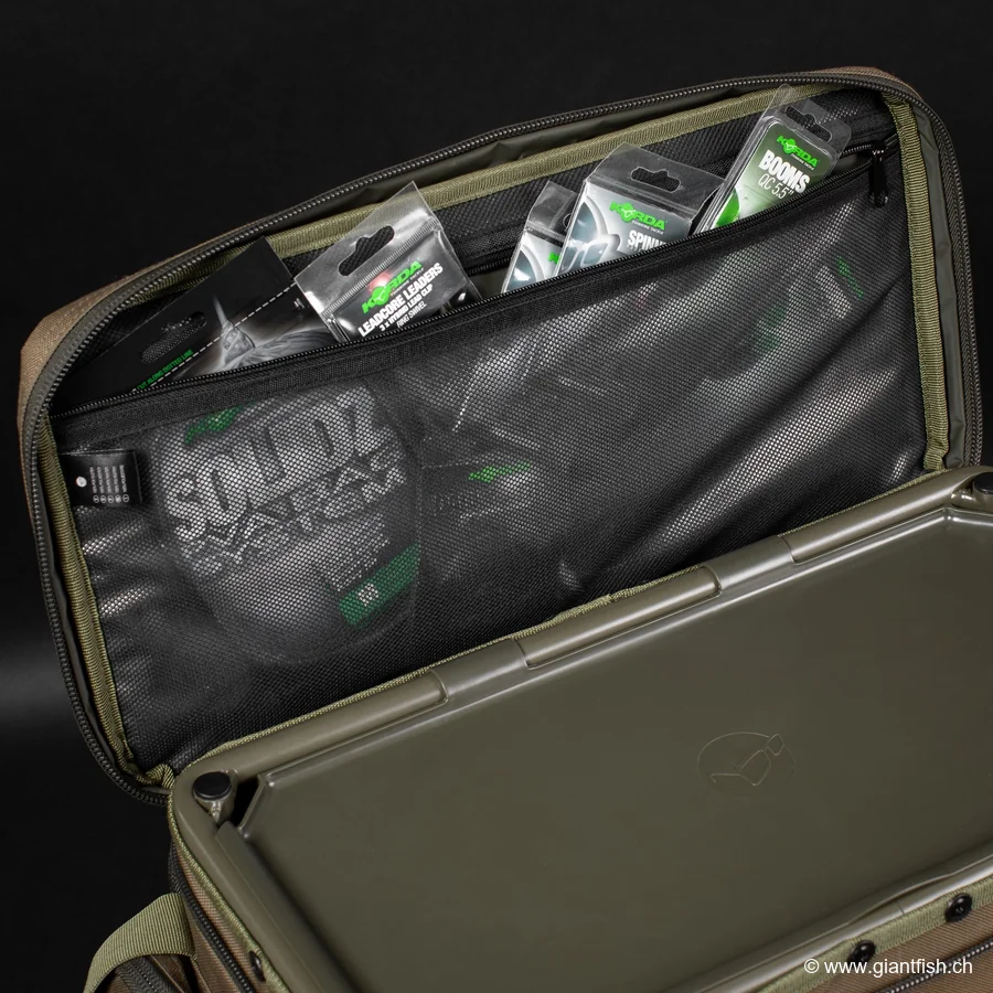 - 5 poches extérieures optimisées pour les pochettes EVA Korda Compac (100, 110, 125, 140)