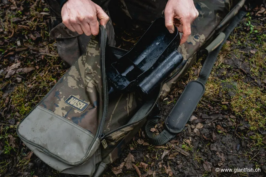 Pour tirer le meilleur parti du sac de transport NASH Subterfuge Bushwhacker, commencez par regrouper vos sections de perche d'amorçage par longueur ou par ordre d'utilisation, puis insérez-les soigneusement dans le compartiment principal. Placez ensuite la tête de Bushwhacker, ou la tête de votre système équivalent, dans la poche zippée dédiée afin d'éviter qu'elle ne vienne heurter les sections pendant le transport. Vérifiez toujours que les fermetures éclair sont complètement refermées avant de déplacer le sac.