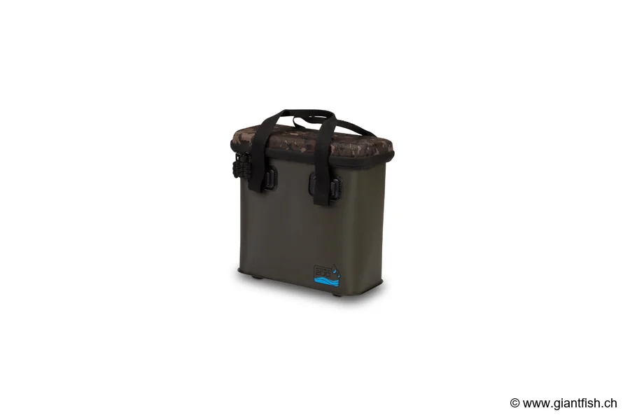 Chaque Waterbox de la série 200 dispose d'un couvercle robuste au motif camouflage discret qui protège des chocs et des projections, tout en s'intégrant parfaitement dans un ensemble de bagagerie carpe camouflage. Des poignées solides et des éléments de renfort facilitent la manipulation, que ce soit sur un chariot, dans une barque ou sous un bedchair, selon le modèle utilisé.