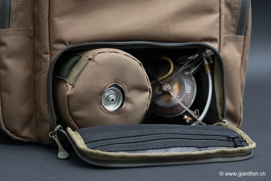 Grand compartiment avant prévu pour une cartouche de gaz 500 + réchaud