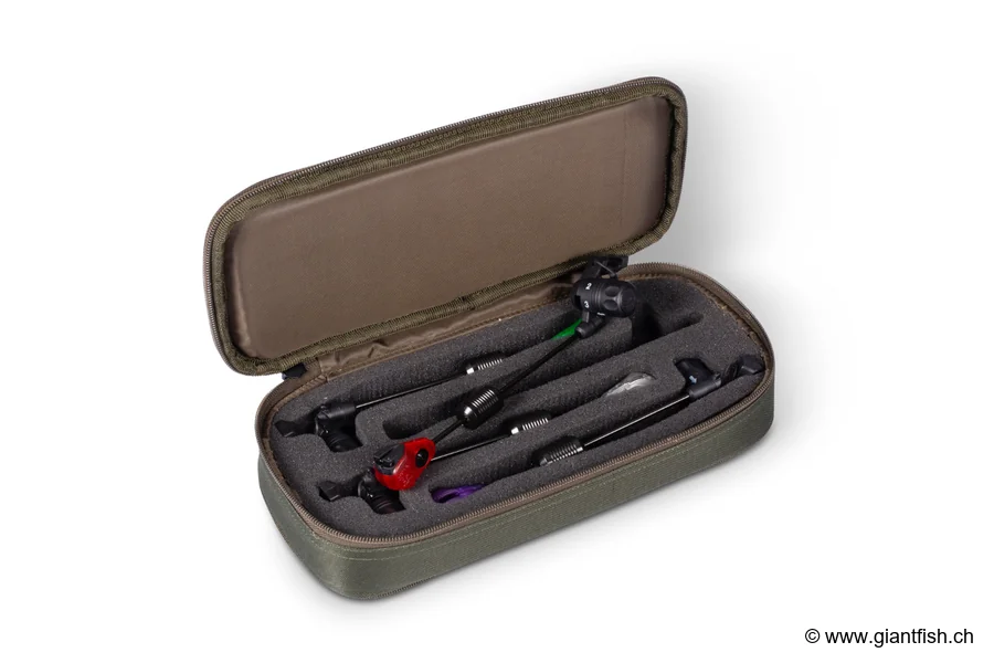 À l'intérieur, des logements moulés en mousse haute densité maintiennent chaque Swing Arm en position, empêchant tout mouvement pendant le transport. Cette organisation interne claire permet de vérifier d'un coup d'œil que tout votre matériel de pêche à la carpe est bien à sa place, tout en réduisant le risque d'oubli au bord de l'eau.