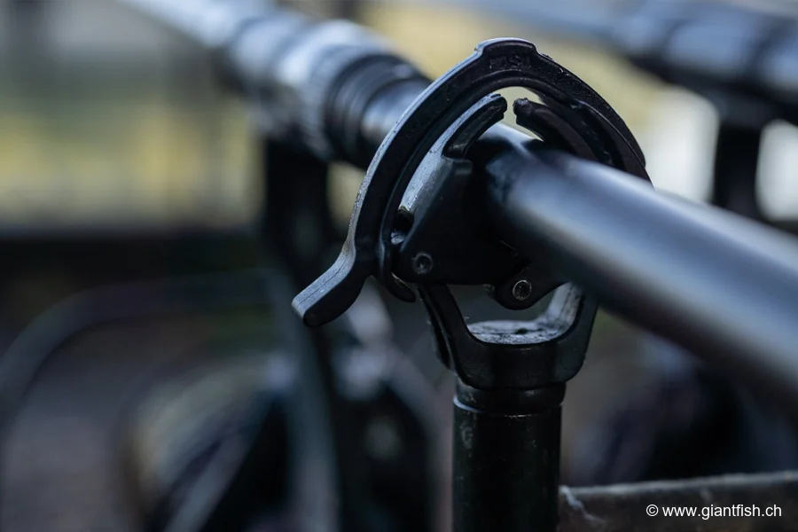 Le fonctionnement à deux temps est à la fois simple, intuitif et rapide. L'installation de la canne se fait d'un geste naturel : il suffit de placer le talon dans le support pour que les cames se referment, puis de rabattre le levier de sécurité. Au moment du ferrage, la canne se libère immédiatement lorsque l'on tire vers le haut, sans forcer et sans manipulation complexe. Ce compromis idéal entre maintien ferme et libération fluide fait du Butt Lock Xtreme un allié précieux pour les pêches techniques en gravières, rivières puissantes ou grands lacs soumis au vent.