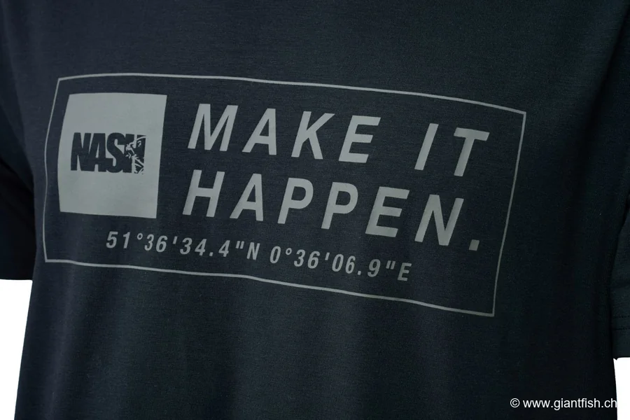 Ce t shirt de pêche Nash a été pensé pour les passionnés qui souhaitent afficher leur amour de la pêche aussi bien au bord de l'eau qu'au quotidien. Avec son design original intégrant un logo « Make It Happen » et des coordonnées GPS symboliques, il incarne l'engagement de la marque auprès des clubs de pêche qui initient chaque année de nombreux jeunes à la discipline. Ce vêtement lifestyle permet ainsi de soutenir une vision moderne, accessible et responsable de la pêche de loisir.