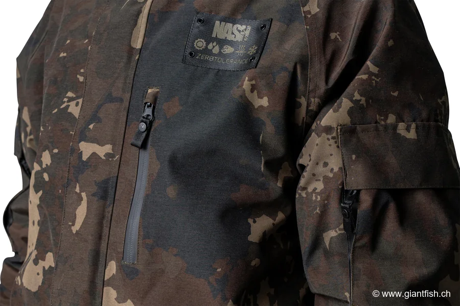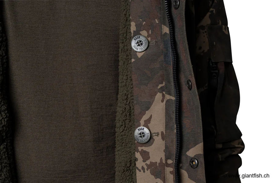 Le panneau d'assise rabattable est un atout majeur pour tous ceux qui pêchent dans des environnements humides : il évite que l'eau ne soit poussée à travers le tissu lorsque l'on reste assis longtemps, protégeant ainsi les sous-vêtements techniques et maintenant un confort durable. Associée à la solidité du tissu extérieur, cette caractéristique fait de la veste NASH ZT Helluva un équipement particulièrement rassurant lorsque la météo se dégrade soudainement.