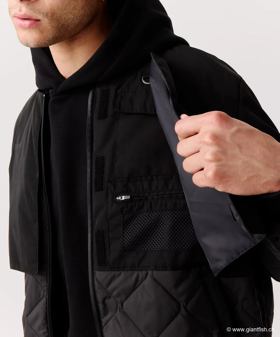 Conseils d’utilisation et montages recommandés :Pour une efficacité maximale lors de la pêche ou des sorties actives, portez la Nays Bomber Jacket sur un tee-shirt technique ou une polaire légère. Grâce à ses poches discrètes, elle permet de transporter leurres, pinces et clefs sans encombrement. Associez-la à un pantalon imperméable lors des jours pluvieux pour une protection totale. Convient parfaitement pour la pratique du street fishing, des randonnées, ou simplement pour un usage quotidien urbain.