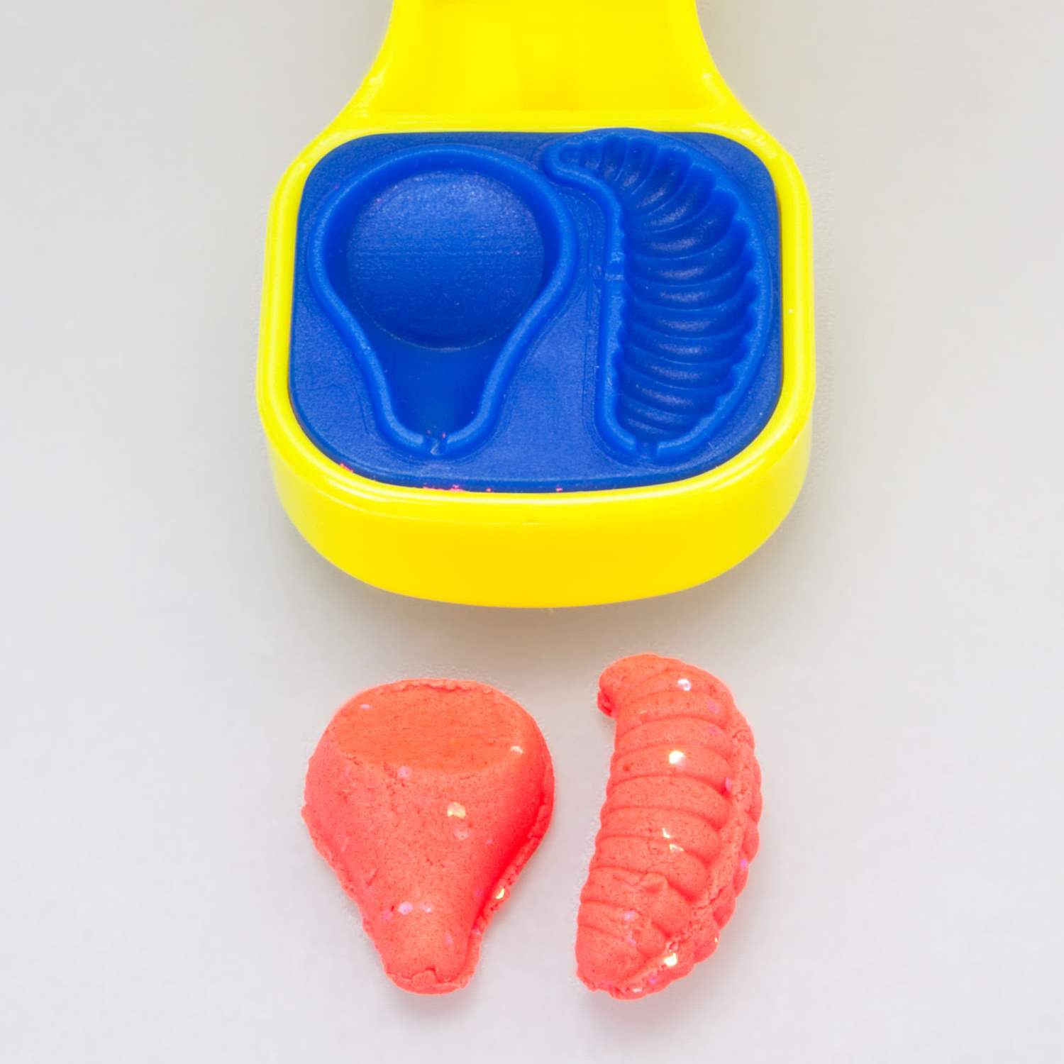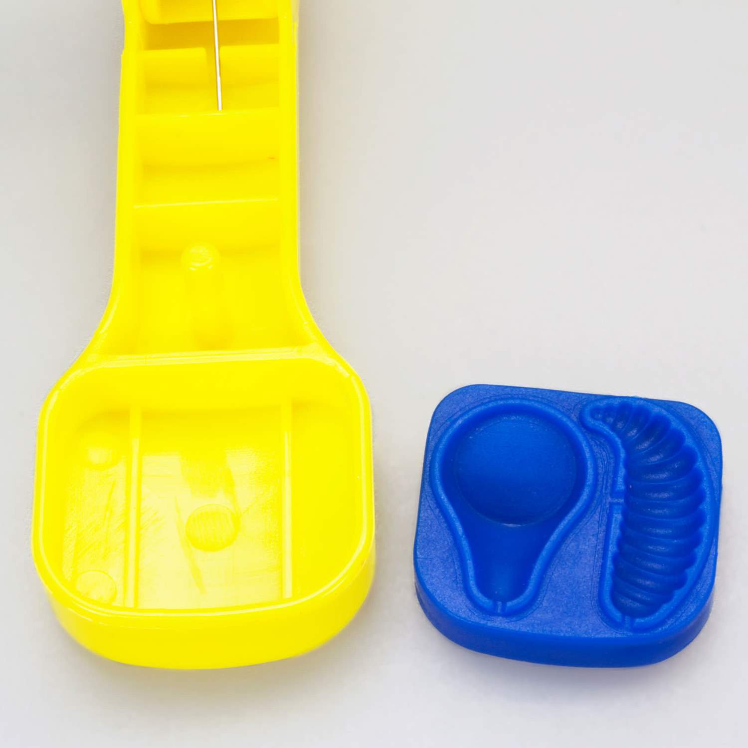 Pour un fonctionnement fluide, il est conseillé de mettre une goutte d'huile sur le moule avec un coton-tige ou similaire avant utilisation afin que la pâte puisse être facilement détachée. L'hameçon peut ensuite être simplement inséré dans la fente du moule et la pâte est bien pétrie dans la pâte.