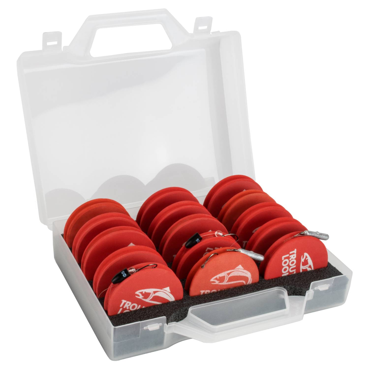 Cette boîte de bobines de bas de ligne Troutlook peut contenir jusqu'à 15 bobines de bas de ligne dans les compartiments rembourrés et prédécoupés de la Smart Rig Case. Chacune des 6 bobines de 40 mm, 50 mm et 70 mm convient parfaitement à cette boîte. Les bobines de bas de ligne assorties (montages) sont bien sûr disponibles dans notre boutique.