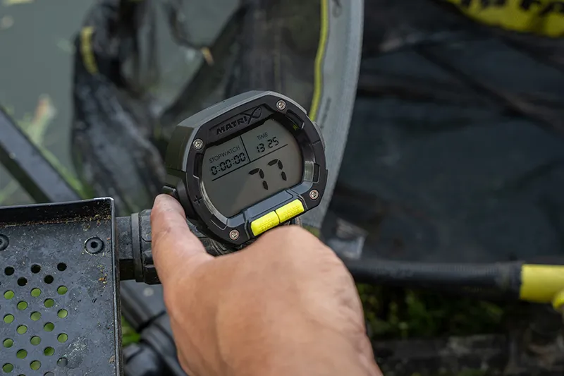 Matrix Digital Clicker est un chronomètre tout-en-un et compteur poids pour pêche avec grand écran LCD. Résistant aux intempéries, il dispose d'un support pliant et d'une fonction de sommeil automatique après 8 heures. Alimenté par batterie CR2032.