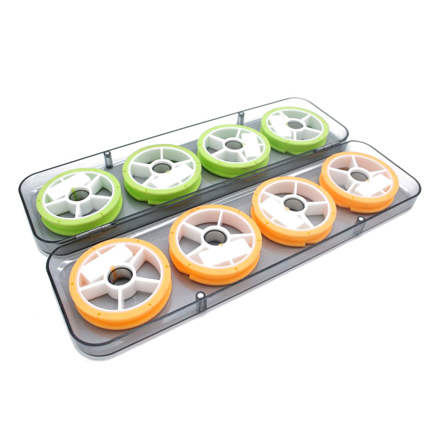 Cette boîte d'enroulement de bas de ligne de Troutlook contient 8 bobines de bas de ligne sur lesquelles vous pouvez enrouler vos bas de ligne finis. Chaque bobine a un diamètre généreux de 70 mm et une hauteur de 14 mm. Les bobines sont entièrement revêtues de silicone à l'extérieur - plus de glissades de la ligne lors de l'enroulement des bas de ligne. Sur les bobines, vous pouvez transporter vos bas de ligne triés. Les différentes couleurs permettent une distinction rapide. En outre, les bobines peuvent être étiquetées avec un stylo lavable.Vos bas de ligne sont bien protégés dans ce boîtier dur Troutlook