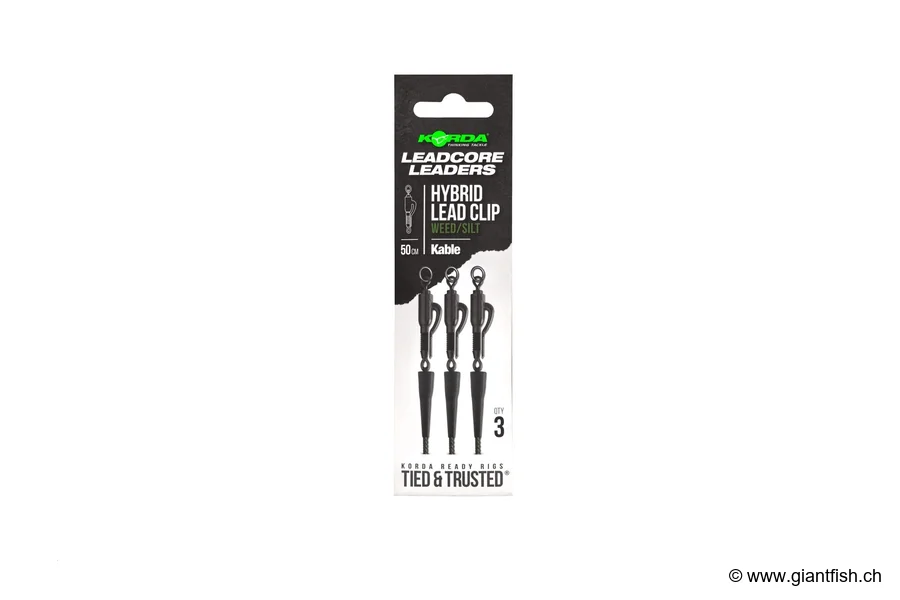 CONSIGLI D'USO E MONTAGGI CONSIGLIATI Per sfruttare tutto il potenziale di questo terminale, si consiglia di abbinarlo a piombi compatibili con i clip Korda e finali in fluorocarbon o monofilamento robusto. Questo leader si adatta perfettamente ai montaggi classici (Snowman, D-Rig o KD Rig) ed è adatto sia per la pesca a distanza che sulla sponda. Per cambiare montaggio rapidamente, basta sostituire il leader o adattare la zavorra secondo l'altezza dell'acqua e la natura del posto. Ideale per sessioni rapide o per ottimizzare i montaggi su postazioni frequentate.