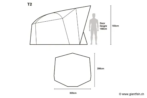Il tessuto resistente e il design avvolgente proteggono efficacemente da pioggia, vento e umidità, consentendo al contempo la circolazione dell'aria per limitare la condensazione. Il Titan T2 rappresenta così una base solida e affidabile per tutte le vostre sessioni, dal weekend alle campagne di più giorni.