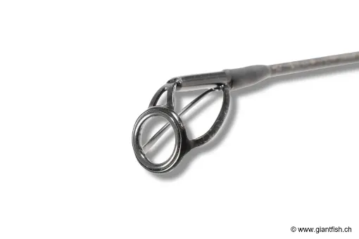 Risposta: Gli anelli in ceramica sono stati scelti per la loro resistenza all'abrasione e per la scorrevolezza, il che li rende perfettamente compatibili con trecce e leader rinforzati.