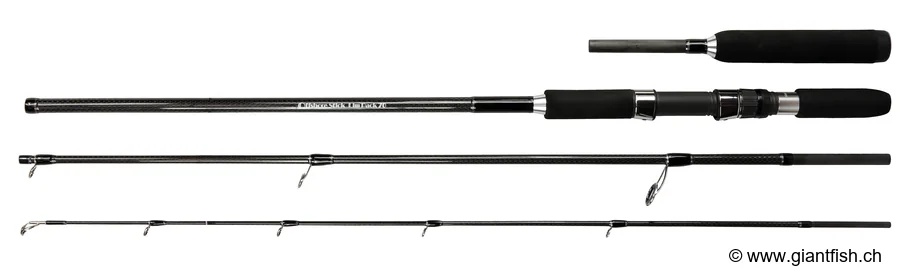 Questa canna da viaggio multi-sezione è stata sviluppata per offrire un ingombro ridotto senza sacrificare le prestazioni in azione di pesca. La sua costruzione permette di utilizzare esche relativamente pesanti, comunemente impiegate per mirare ai predatori aggressivi in ambienti tropicali o temperati.