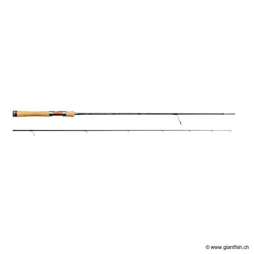 - Costruzione in carbonio a basso modulo che offre flessibilità e azione progressiva per un perfetto controllo delle esche leggere