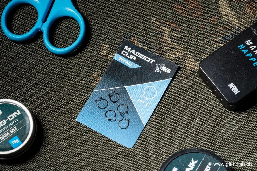 Progettato per rispondere alle esigenze dei pescatori di carpa, il clip per bigattini NASH punta sulla semplicità d'uso, la solidità e la discrezione sott'acqua. Costituisce una soluzione affidabile per presentare mazzi di bigattini compatti, sia in laghi, cave ghiaiose o in fiumi a corrente lieve.