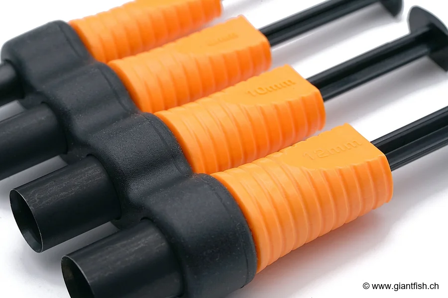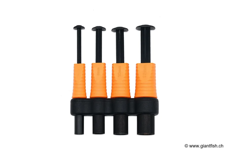 Punch Set Guru, seleziona il diametro adatto alla tua esca (pane, carne, pellets) e poi premi con decisione sull'esca fino a che il taglio non sia netto. Usa il pistone per espellere l'esca senza sforzo. Si consiglia di associare queste esche a montaggi semplici su amo o feeder method, ottimizzando l'attrattività durante le pesche a colpo o a feeder classico. Privilegia un montaggio equilibrato per un armamento perfetto.